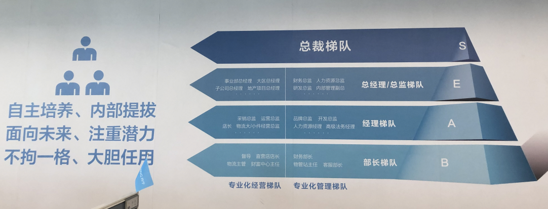 蘇寧主要通過1200校招工程進(jìn)行人才梯隊(duì)培養(yǎng),將人才團(tuán)隊(duì)劃分為B梯隊(duì)(部長(zhǎng)梯隊(duì))、A梯隊(duì)(經(jīng)理梯隊(duì))、E梯隊(duì)(總經(jīng)理/總監(jiān)梯隊(duì))、S梯隊(duì)(總裁梯隊(duì)),逐層選拔培養(yǎng),在潤(rùn)物細(xì)無(wú)聲中形成了組織的人才梯隊(duì)。
