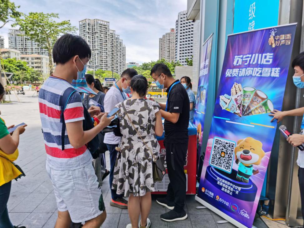 無獨有偶,群星廣場蘇寧易購門店外的活動賽場亦同步在火熱舉行中,7月18日-7月19日,蘇寧聯(lián)合美的一同舉辦中國好聲音復(fù)賽,活動現(xiàn)場熱鬧非凡,做好防疫檢查工作的同時,全力維護現(xiàn)場治安秩序穩(wěn)定,活動現(xiàn)場蘇寧小店展開夏日送清涼活動,免費送冰水雪糕,用“清涼一夏”的愛心之舉,給市民帶去一份夏日關(guān)懷。同時現(xiàn)場參賽選手三十余位埋藏著夢想的音樂人在舞臺上縱情燃燒,深情獻唱,將活動推向了高潮。一同成就粵港蘇寧十九周年最炫的夜晚。
