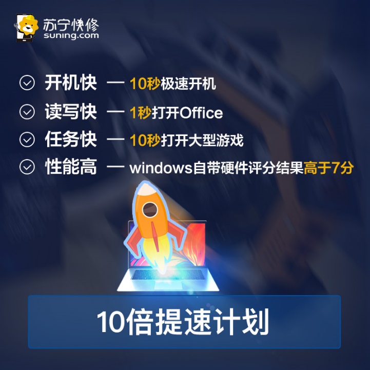目前,電腦十倍提速服務(wù)已正式上線蘇寧易購,用戶打開蘇寧易購搜索“10倍提速”,即可進(jìn)入購買界面,下單后到附近的蘇寧門店便可完成服務(wù)。