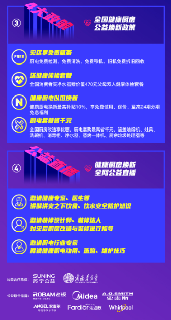 與此同時(shí),洪水致使大批廚房電器受損,疊加高溫天氣,災(zāi)民飲食安全面臨考驗(yàn)。蘇寧易購(gòu)特別捐贈(zèng)50套健康廚電,涵蓋油煙機(jī)、灶具、消毒柜等必備廚房電器,讓災(zāi)民更快恢復(fù)健康生活。同時(shí),廚房作為“病從口入”最關(guān)鍵的環(huán)節(jié),洗菜、水質(zhì)凈化、烹飪除油煙、餐具清潔消毒、廚余垃圾處理等每一環(huán)都不容忽視,蘇寧易購(gòu)特別倡導(dǎo)“健康廚房7步驟”,全流程打造健康廚房,并借助蘇寧易購(gòu)雙線渠道全面開展科普活動(dòng)。