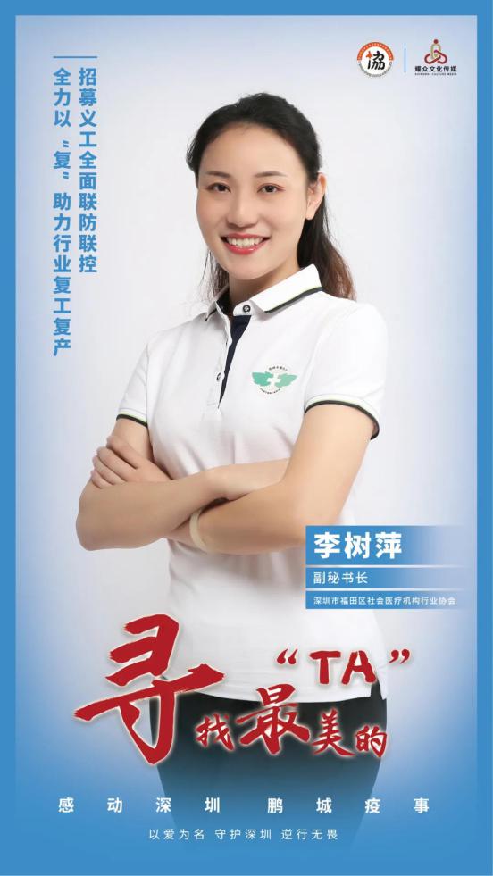 深圳市福田區(qū)社會醫(yī)療機構(gòu)行業(yè)協(xié)會副秘書長李樹萍,在區(qū)衛(wèi)生局的幫助下,早在1月16日即率先組織了福田轄區(qū)約250家社會辦醫(yī)機構(gòu)的防疫應急培訓,為后續(xù)的科學防控打下了扎實基礎。疫情關鍵時期,社區(qū)防控一線醫(yī)務人員力量嚴重不足,李樹萍帶領團隊聯(lián)合黨委和行業(yè)協(xié)會發(fā)起志愿者招募。歷時3個工作日共招募到196名志愿者,培訓后符合要求上崗聯(lián)防聯(lián)控的123名志愿者,總服務時長達4555小時。
