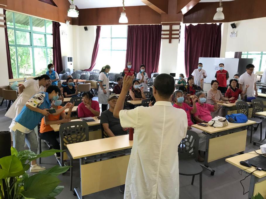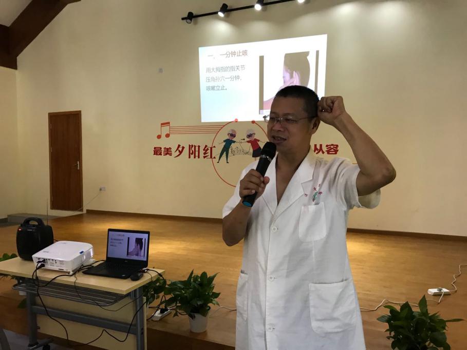 活動過程中,全場互動和諧有序:老年朋友們仔細聽講,積極提問,中醫(yī)專家耐心解答,現(xiàn)場手把手教老年人指位法,一分鐘解決疼痛、咳嗽、止喘等技法,現(xiàn)場學(xué)習(xí)、現(xiàn)場體驗,現(xiàn)場有效,激發(fā)了老年人的興趣,受到了老年人的歡迎。