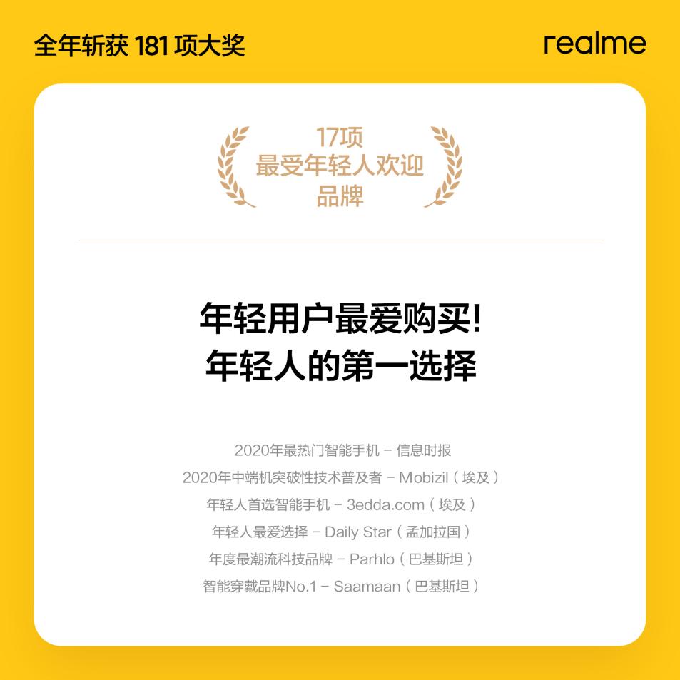 自創(chuàng)立以來(lái),realme一直面向年輕用戶(hù)群體,基于對(duì)年輕人審美與偏好的精準(zhǔn)洞察與理解,不斷滿(mǎn)足和超越年輕科技愛(ài)好者的需求,這一策略在東南亞、南亞、歐洲、非洲等市場(chǎng)獲得極大認(rèn)可。2020年,全球給予realme“年輕人最喜愛(ài)品牌”等相關(guān)獎(jiǎng)項(xiàng)達(dá)17項(xiàng),用實(shí)力證明realme是“年輕人第一選擇”。同時(shí),realme一舉網(wǎng)羅全球各大產(chǎn)品獎(jiǎng)項(xiàng),充分證實(shí)了“好產(chǎn)品會(huì)說(shuō)話,產(chǎn)品才是硬實(shí)力”這句被商界奉為圭臬的卓見(jiàn)。