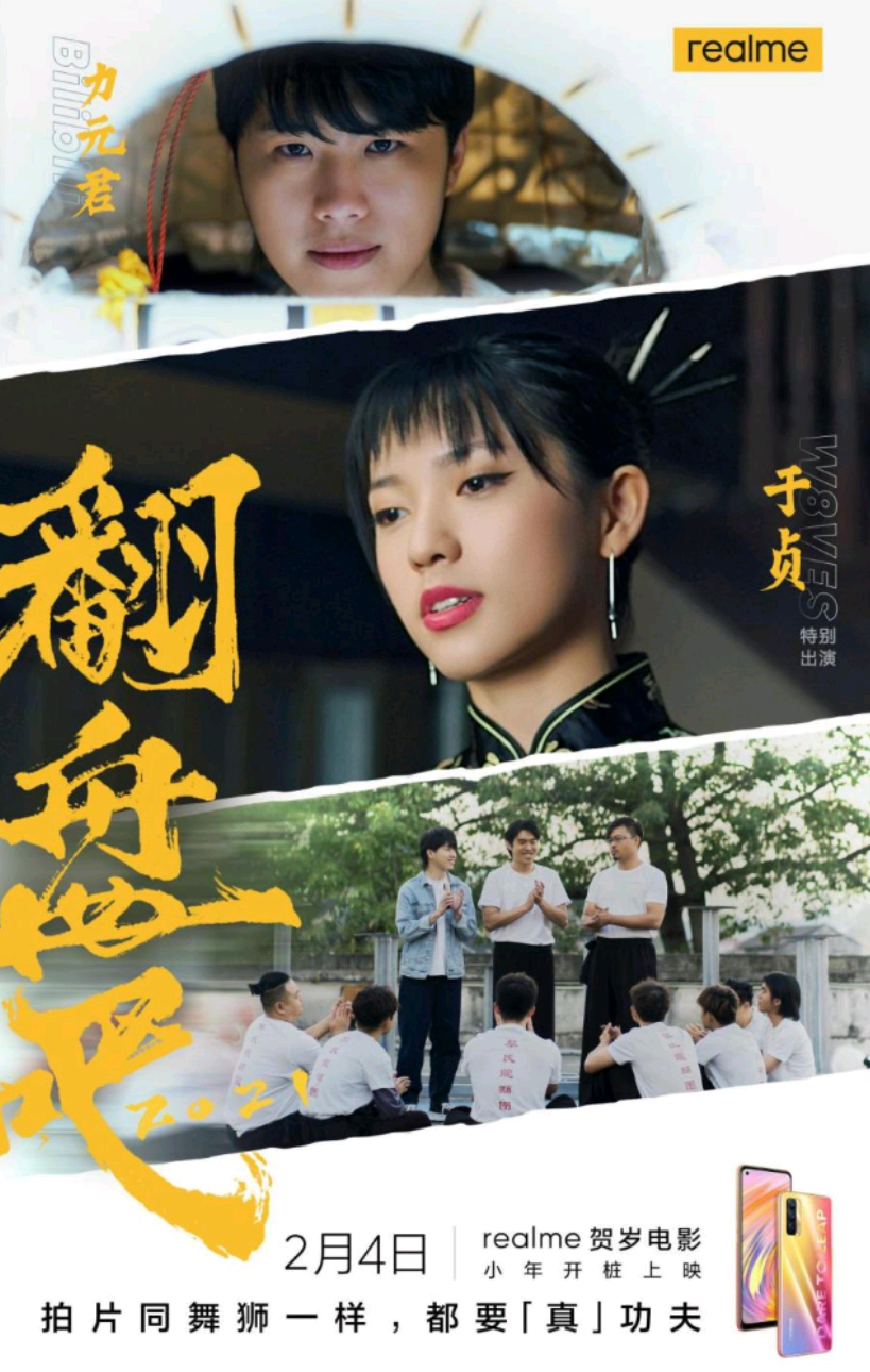 賀歲微電影《翻盤吧2021》以中國傳統(tǒng)民間藝術(shù)舞獅為背景,講述了廣東醒獅武館新一代傳承人阿正通過不懈的努力,聯(lián)合師兄弟一起振興武館,并在B站UP主力元君的鼓勵下,用真我V15國潮錦鯉手機(jī)拍攝醒獅視頻,體現(xiàn)年輕一代敢于突破傳統(tǒng),重振武館,推廣及傳承傳統(tǒng)文化。此外,個性鮮明的說唱新星于貞也參與演出,共同演繹“越努力越幸運(yùn)”的翻盤故事。