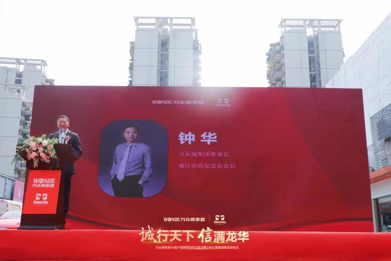 儀式上,誠商會創(chuàng)會會長、萬眾城集團董事長鐘華致歡迎辭,他說,萬眾城集團自2009年開始做誠信建設(shè),創(chuàng)立了“誠信基金”“誠信沙龍”“5A級誠信商戶評選”三板斧,將商戶有效投訴從十二年前的91起,商戶自覺誠信經(jīng)營,往后每年未超過5起。萬眾城既是誠信建設(shè)者,也是受益者,投訴率和理賠率逐年下降,商家營業(yè)額逐年上升。經(jīng)過嚴(yán)格的篩選和評審,萬眾城家居評出了2020年度5A商戶共346戶,并在當(dāng)天的儀式上給20名5A商戶代表授牌。