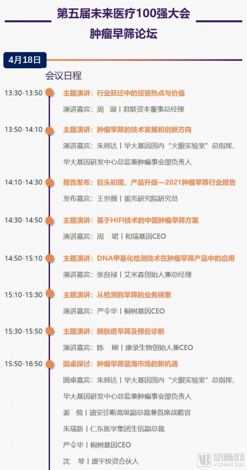 在此背景下,4月18日,第五屆未來(lái)醫(yī)療100強(qiáng)大會(huì)·腫瘤早篩論壇將探討如何用科研轉(zhuǎn)化的力量并有效地轉(zhuǎn)化產(chǎn)品、如何利用技術(shù)賦能精準(zhǔn)診療、如何構(gòu)建互聯(lián)網(wǎng)診斷閉環(huán)等。屆時(shí),華大基因朱師達(dá)博士將在腫瘤早篩論壇現(xiàn)場(chǎng),帶來(lái)以《腫瘤早篩的技術(shù)發(fā)展和創(chuàng)新方向》為題的分享,與業(yè)內(nèi)專家共話腫瘤早篩行業(yè)新技術(shù)、新發(fā)展、新趨勢(shì)。