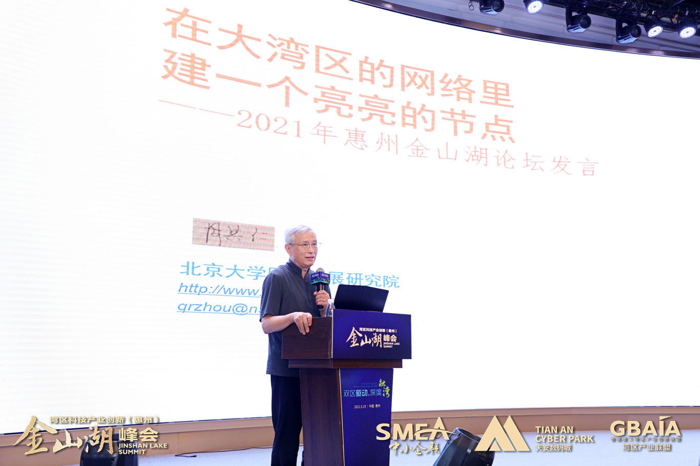 北京大學博雅資深講座教授周其仁進行題為《在大灣區(qū)的網(wǎng)絡里建一個亮亮的節(jié)點》的主旨演講