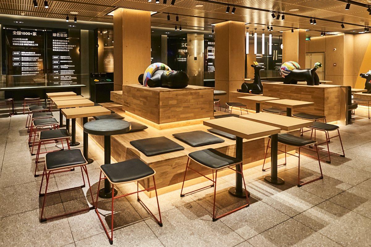 據(jù)了解,在這家餐廳中,麥當(dāng)勞中國(guó)也探索了更多綠色創(chuàng)新的新應(yīng)用,包括首次使用更節(jié)能舒適的照明系統(tǒng);首次使用回收再造家具,100%海洋塑料回收制成的餐廳座椅;可回收的室內(nèi)裝飾等。