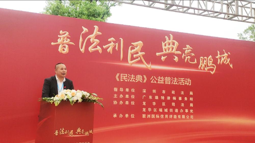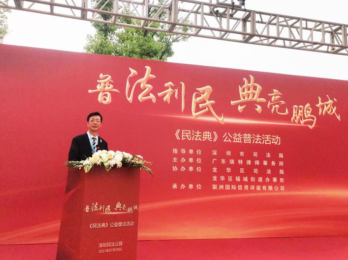 讀特客戶端·深圳新聞網(wǎng)2021年7月29日訊 (記者 常軍平) 昨日,由深圳市司法局指導(dǎo)、廣東瑞特律師事務(wù)所主辦、龍華區(qū)司法局、龍華區(qū)福城街道辦事處、深圳潮青會(huì)協(xié)辦、聯(lián)洲國(guó)際信用評(píng)級(jí)有限公司承辦的“普法利民,典亮鵬城”《民法典》公益普法活動(dòng)在龍華舉行。
