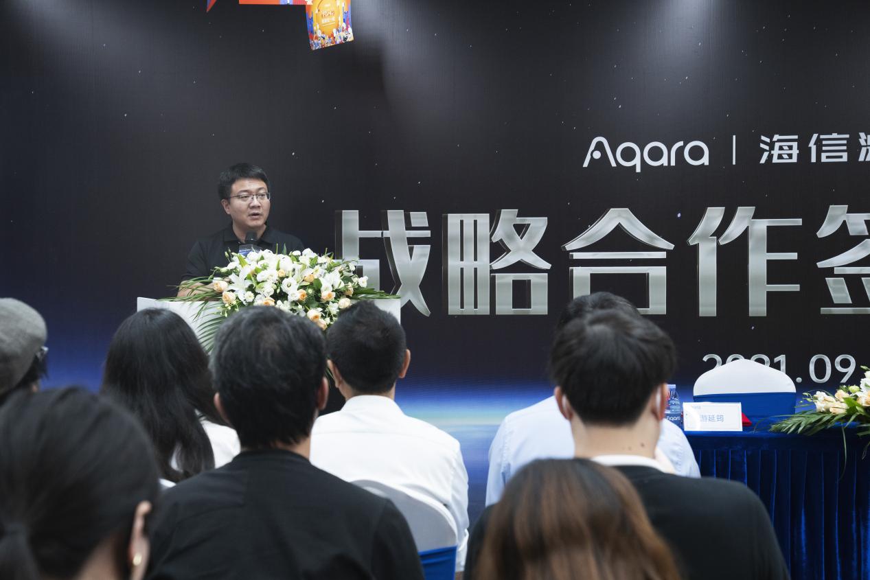 致辭環(huán)節(jié),海信集團控股公司副總裁于芝濤也發(fā)來了線上祝福視頻,表達了對這次雙方合作,共同致力全屋智能美好體驗再升級的美好祝愿。與此同時,青島海信激光顯示股份有限公司的副總經(jīng)理王偉介紹了海信電視在戰(zhàn)略發(fā)展方向上的重塑新定位、新技術應用、產(chǎn)品優(yōu)勢以及所取得的階段性成就等,并表示Aqara作為全球智慧生活方式的先行者和引領者,致力于打造「千人千面」的全屋智能生活方式,要做更懂用戶的“家”,這和海信電視“顯示無處不在,服務無處不在,連接無處不在”的發(fā)展理念不謀而合。除去智能化,雙方與生俱來的“綠色基因”更加夯實了這種合作契因,并始終堅信,未來海信電視與Aqara將會不斷用綠色智能科技提升大家的家居生活品質,打造大屏時代的綠色客廳,引領中國IoT的發(fā)展。