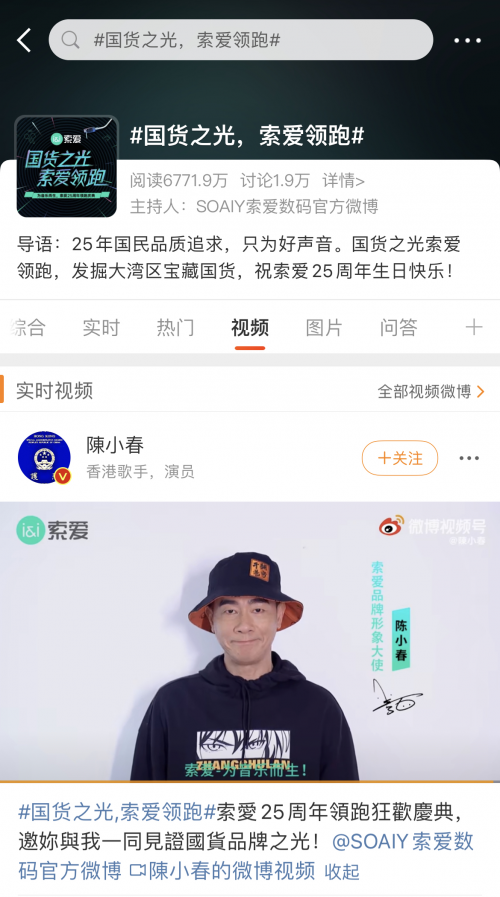 讀特客戶端·深圳新聞網(wǎng)2021年10月22日訊(記者 田志強)近日,索愛廣州25周年慶領跑活動在網(wǎng)絡持續(xù)發(fā)酵,引爆輿論熱烈關(guān)注。作為音頻數(shù)碼行業(yè)首個登錄廣州塔的國貨品牌,索愛25周年領跑活動吸引了大量的媒體和達人齊聚廣州塔,索愛品牌和產(chǎn)品熱度以廣州為中心迅速向周邊地域傳播。在索愛冠名高鐵、簽約陳小春夫婦為品牌形象大使等品牌事件的疊加聚合效應下,#國貨之光,索愛領跑#等話題和熱度持續(xù)傳播至各社交平臺,各個類別KOL相繼為索愛發(fā)聲,僅在微博平臺的話題閱讀量已突破數(shù)千萬。