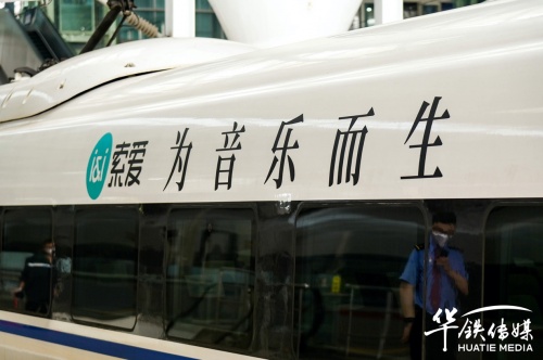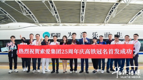 10月28日上午,索愛集團董事長劉建佳、總經(jīng)理全雪梅、華鐵傳媒集團廣州分公司銷售總經(jīng)理劉延群等領(lǐng)導(dǎo)嘉賓共同為冠名發(fā)車儀式揭幕、剪彩、互贈紀(jì)念禮品,在現(xiàn)場嘉賓的共同見證下,張貼索愛全新品牌代言人陳小春夫婦形象宣傳海報的“索愛-為音樂而生”高鐵冠名列車正式啟程。