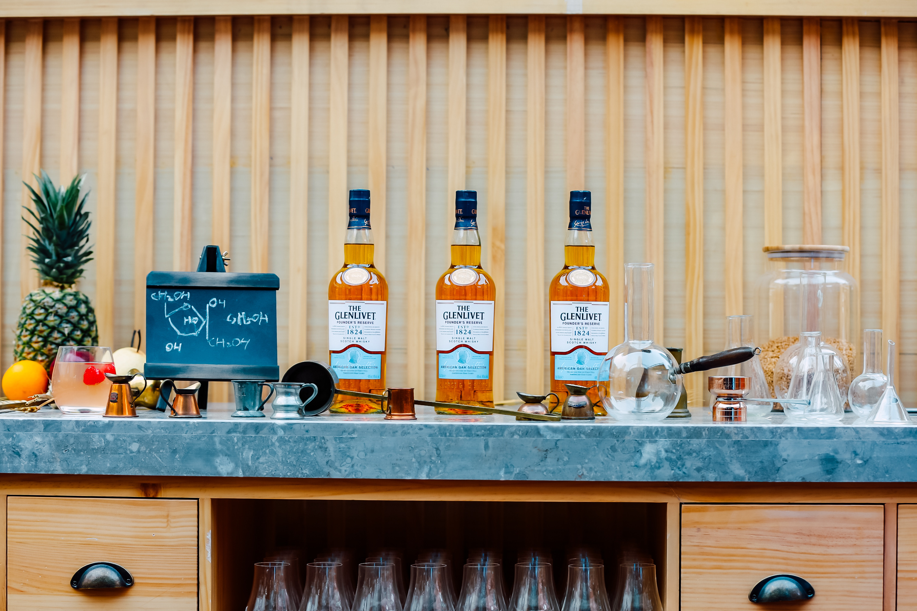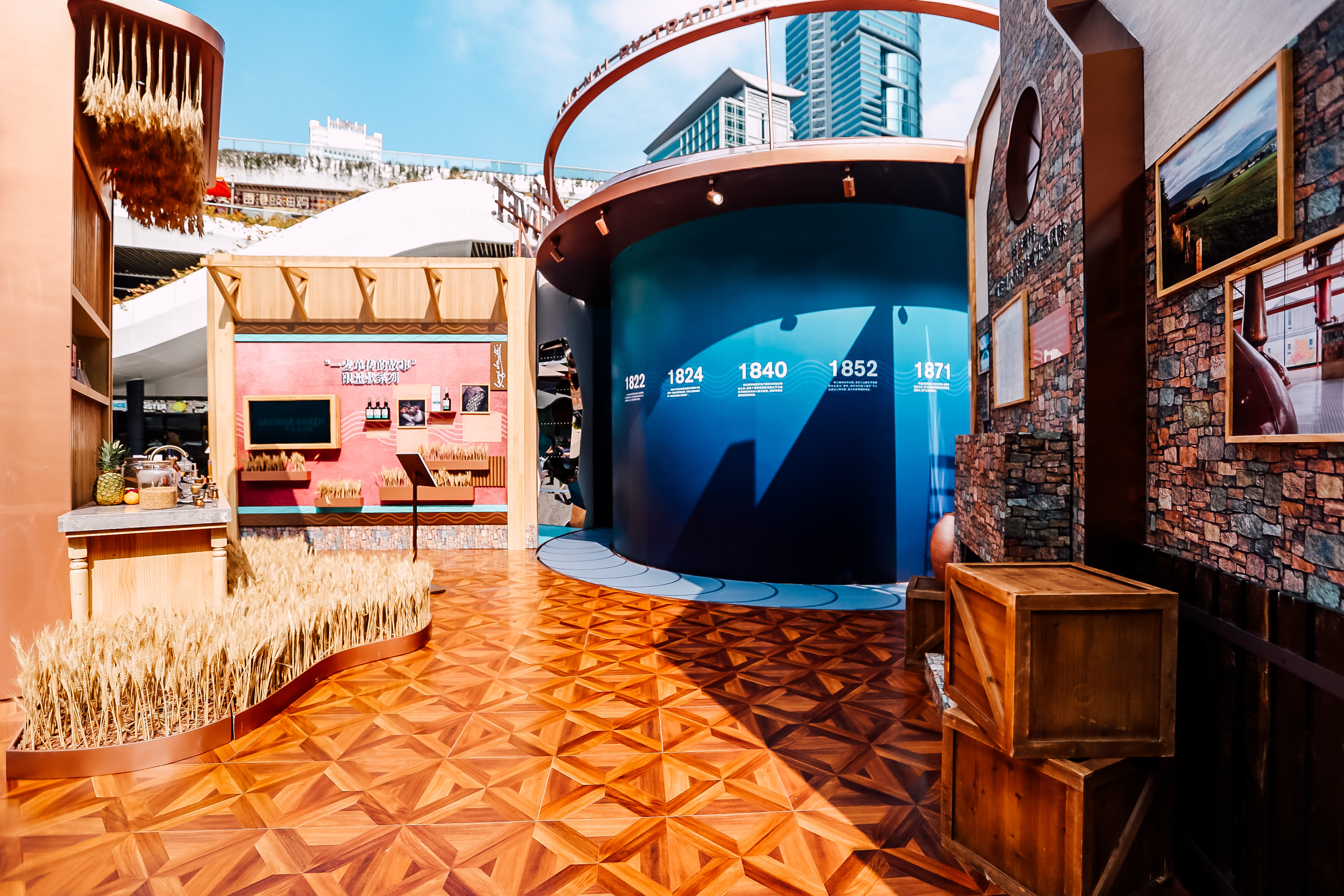 時光穿梭酒廠入口以“破墻而出”的投影裝置為來賓開啟時光隧道的大門,極具震撼力的視覺畫面展現(xiàn)格蘭威特打破傳統(tǒng)、大膽顛覆的創(chuàng)新精神,一段奇妙的旅程便由此開啟。踏上傳送帶,來賓首先抵達還原了一間復古簡陋的茅草屋的“創(chuàng)始人蒸餾室”,作為格蘭威特的發(fā)源地,品牌創(chuàng)始人喬治·史密斯先生百年前便在此秘密蒸餾了首批格蘭威特單一麥芽威士忌。古樸的木質(zhì)操作臺上擺放著調(diào)配實驗中所需的各種儀器,灰磚墻面上展示著酒廠各時期的歷史照片,列架上則陳列了向喬治 ·史密斯先生致敬的創(chuàng)始人甄選單一麥芽威士忌,帶領(lǐng)威士忌愛好者們跨越時空回顧專屬格蘭威特的傳奇歷史和傳承。值得一提的是,繼12年秘密蒸餾發(fā)布后,格蘭威特“一麥單傳的故事”限量系列中的第二款全新杰作——12年創(chuàng)始佳釀限量版也在此處正式亮相。采用“初填雙橡木桶威士忌”制作理念,這款佳釀以其特有的宜人果香為原始的斯佩塞威士忌賦予了全新風味。格蘭威特以此紀念喬治?史密斯先生成為當?shù)芈氏全@得威士忌制作許可的蒸餾師的傳奇歷史,向其敢為人先的勇氣致敬。