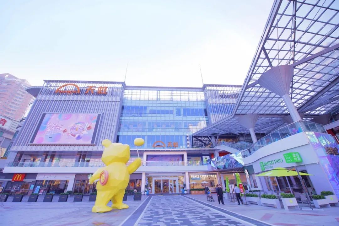 常平天虹購(gòu)物中心擁有特色十足的盒子+情景主題街區(qū)建筑布局。多首層式設(shè)計(jì),讓顧客可以自由地從不同樓層進(jìn)入商場(chǎng),打破傳統(tǒng)“盒子”建筑的封閉空間感,使逛街充滿樂(lè)趣。購(gòu)物中心門(mén)前的常平首家 IP休閑歡樂(lè)廣場(chǎng),擁有6米高泡泡熊雕塑、燈光音樂(lè)噴泉等娛樂(lè)設(shè)施,為周邊居民創(chuàng)造一個(gè)可玩、可親、可打卡的戶(hù)外體驗(yàn)空間。