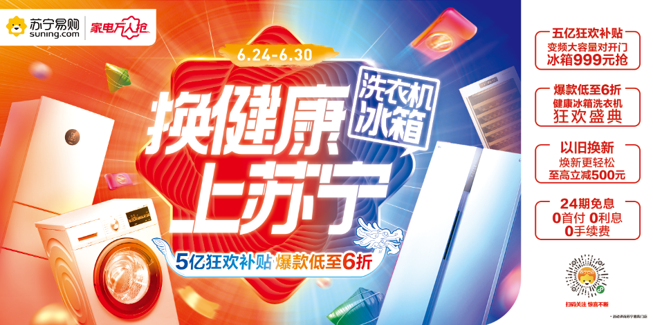 正值北方暑熱、南方梅雨季節(jié),蘇寧易購精準洞察消費者換新需求,延續(xù)618年中大促熱度,于6月24日 -6月30日推出萬人搶冰洗活動。