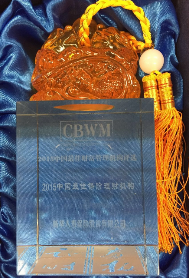2015年6月,2015中國(guó)財(cái)富管理跨界融合高峰論壇暨2015中國(guó)最佳財(cái)富管理機(jī)構(gòu)評(píng)選頒獎(jiǎng)”在深圳舉行。憑借穩(wěn)健的盈利能力及優(yōu)秀的風(fēng)險(xiǎn)管控能力,新華保險(xiǎn)斬獲2015“中國(guó)最佳保險(xiǎn)理財(cái)機(jī)構(gòu)”獎(jiǎng),蟬聯(lián)該榮譽(yù)獎(jiǎng)項(xiàng)。