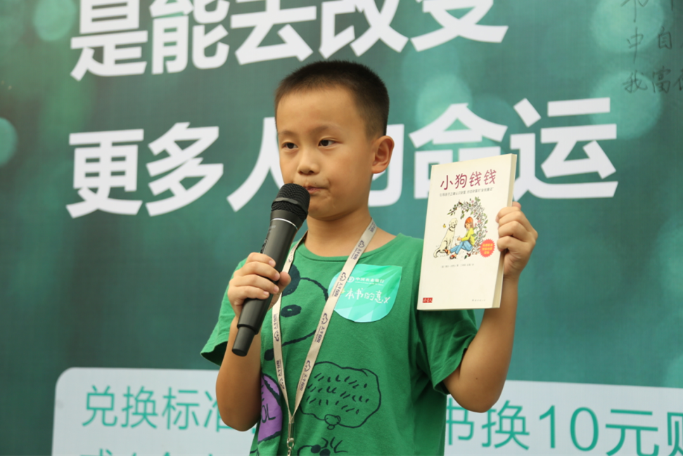本次活動(dòng)受到了社會(huì)各界的熱烈響應(yīng),錦田小學(xué)的30余位家長(zhǎng)和學(xué)生更是組團(tuán)來到現(xiàn)場(chǎng),他們不僅帶來了近400本優(yōu)質(zhì)少兒讀物并全部捐獻(xiàn)出來,而且還帶來了精彩的圖書分享會(huì)。記者在現(xiàn)場(chǎng)看到,錦田小學(xué)的小朋友們?cè)趽Q書間隙,紛紛登上舞臺(tái)與大家分享自己喜愛的書籍和感悟,并繪聲繪色地講述書籍中精彩的部分。李博恒小朋友更是給大家分享了一本叫做《小狗錢錢》的書,書中指出了一些孩子理財(cái)?shù)男》椒?,小小年紀(jì)閱讀涉獵范圍就很廣,令家長(zhǎng)們贊嘆不已。