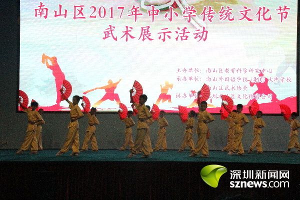 南山區(qū)2017年中小學傳統(tǒng)文化節(jié)武術展示活動由南山區(qū)教育科學研究中心主辦,南山外國語學校(集團)大沖學校和南山區(qū)武術協(xié)會承辦。南山區(qū)教育科學研究中心主任余耀賢介紹,為進一步弘揚優(yōu)秀中華傳統(tǒng)文化,落實立德樹人的根本任務,南山區(qū)教育局舉行了首屆傳統(tǒng)文化節(jié)活動,開展了經(jīng)典詩詞特色展演、中小學書法大賽、中國戲曲和民族樂器比賽、中小學生圍棋大賽、傳統(tǒng)文化沙龍和專家報告等形式多樣的活動。