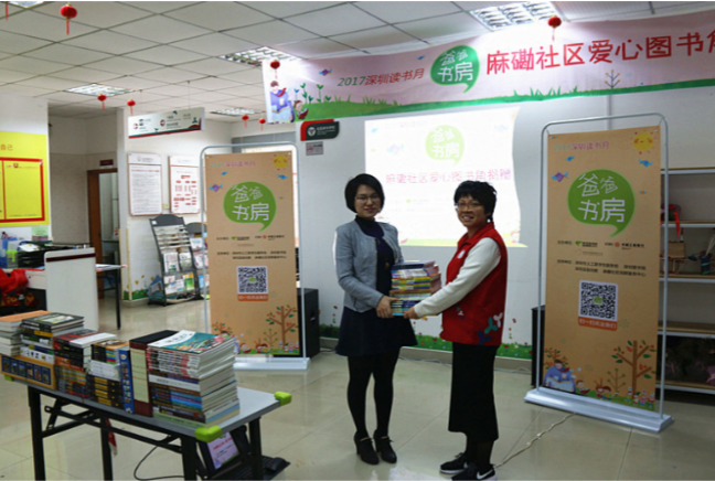 據(jù)介紹,為建設(shè)“學(xué)習(xí)型社區(qū)”,麻磡社區(qū)已經(jīng)建立了“四點(diǎn)半學(xué)校閱讀區(qū)”閱讀室,但由于社區(qū)原有圖書(shū)陳舊,急需一批新書(shū)豐富圖書(shū)資源來(lái)滿足社區(qū)孩子們的閱讀需求。了解到這一信息后,“爸爸書(shū)房”聯(lián)合中國(guó)工商銀行深圳分行、深圳市閱讀聯(lián)合會(huì)采購(gòu)了一批全新的兒童讀物送到麻磡社區(qū),建立“爸爸書(shū)房愛(ài)心圖書(shū)角”,助力社區(qū)圖書(shū)室建設(shè)。