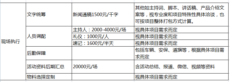 3、后勤保障:舉辦大型活動時,為了保障嘉賓安全,渲染現(xiàn)場氣氛,通常需要有一系列的車輛、安保、道路指引旗幟等工作。深圳新聞網(wǎng)擁有豐富的大型現(xiàn)場活動把控經(jīng)驗,特別是與相關(guān)部門,如城管、公安、交通等主管職能機構(gòu)溝通、協(xié)調(diào)、策劃的能力,保障活動安全,萬無一失。具體費用需要依據(jù)項目的規(guī)模、時長、等級來具體商議。