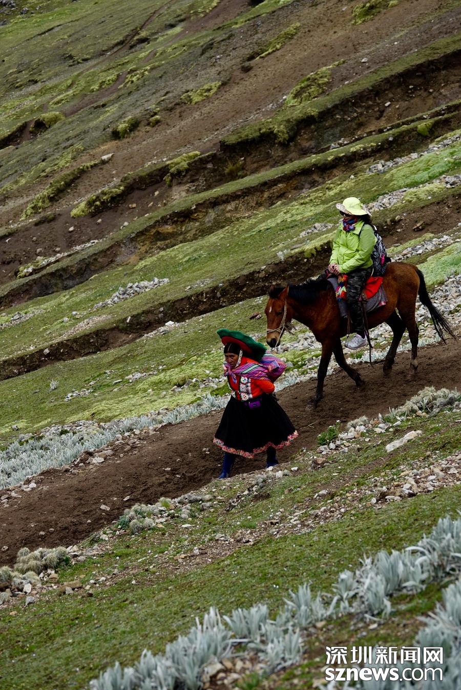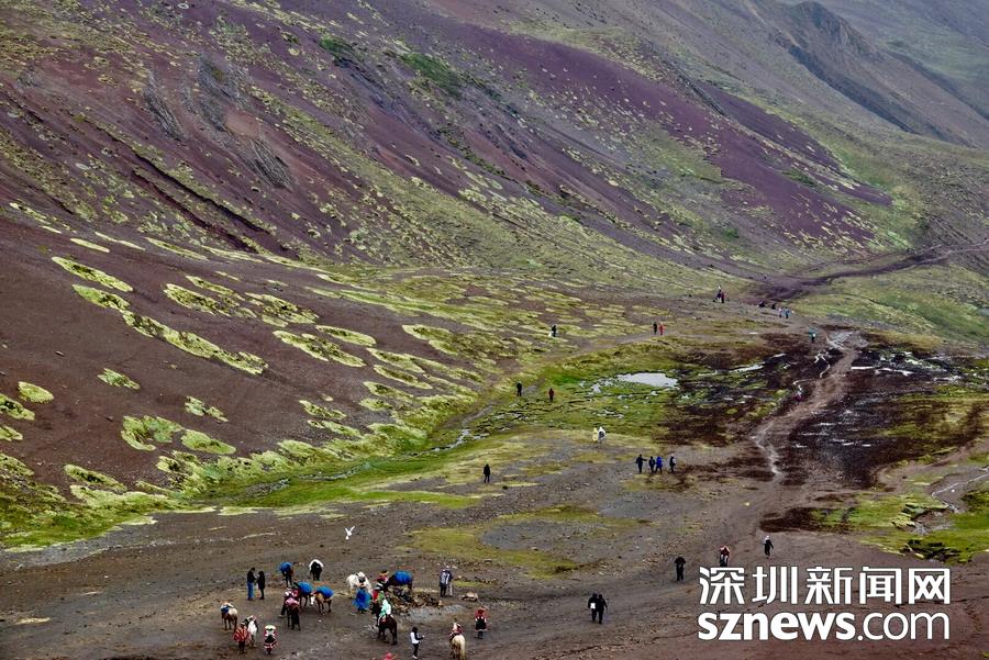 深圳新聞網(wǎng)訊 彩虹山被當(dāng)?shù)厝朔Q為維昆尼卡。深藏于秘魯庫(kù)斯科古城附近的安第斯山脈之中,多年來(lái)它一直隱藏在冰雪之下,據(jù)說(shuō)是因?yàn)闇厥倚?yīng),雪線升高露出真容,才于2016年被發(fā)現(xiàn),并迅速成為世界知名景點(diǎn)。這里可以觀賞到的還有冰川、高山草甸、羊駝以及當(dāng)?shù)厣贁?shù)民族的風(fēng)情。李仁奇攝