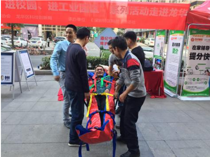 深圳市沃邦科技有限公司則給市民開展了急救新科技課堂。在活動(dòng)現(xiàn)場(chǎng),讓市民體驗(yàn)了真空擔(dān)架、真空綁帶和心肺復(fù)蘇機(jī)等急救工具,切身將急救科普知識(shí)傳播給市民,為市民安全保駕護(hù)航。