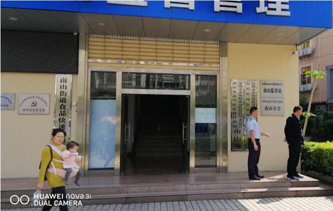 隨后,市民前往位于南山市場(chǎng)附近的南山食品藥品監(jiān)督管理局南山所,該地點(diǎn)還顯示有南山街道食品快速檢測(cè)室,然而市民檢測(cè)卻被阻攔。