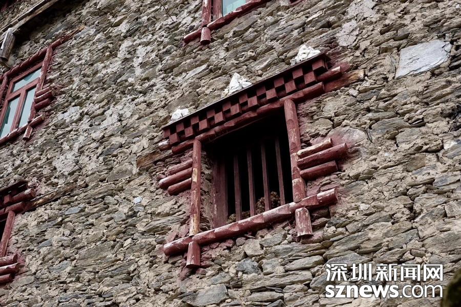 民居內(nèi)房間寬闊、梁柱縱橫,一般有二至三層,上面作為住房,下面設(shè)牛羊圈舍或堆放農(nóng)具,屋內(nèi)房頂常壘有一"小塔",供奉羌人的白石神(一塊卵狀白色石頭)。李仁奇 攝