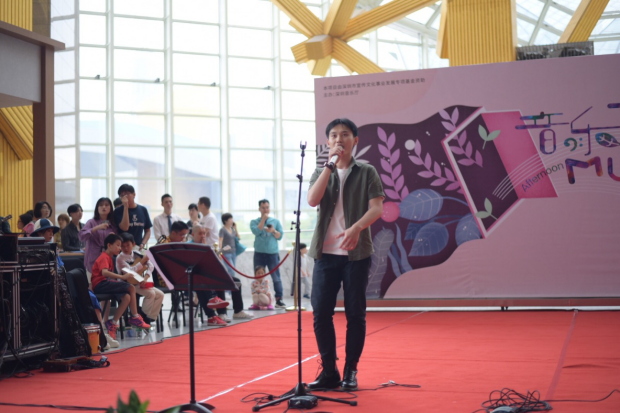 畢業(yè)于深圳大學(xué)金鐘音樂學(xué)院的主唱周鈺城帶來兩首尤克里里樂隊(duì)歌曲, Jason Mraz 的經(jīng)典曲目《 I’ m Yours 》和英國當(dāng)紅歌星 E d sheeran 的 《 Thinking out Loud 》,周鈺城富有磁性的嗓音,在深圳夏威夷小吉他協(xié)會(huì)理事謝佳宜的尤克里里琴聲以及同樣畢業(yè)于深圳大學(xué)金鐘音樂學(xué)院的鼓手黃曉輝的鼓聲伴奏中,美妙的融合在一起。