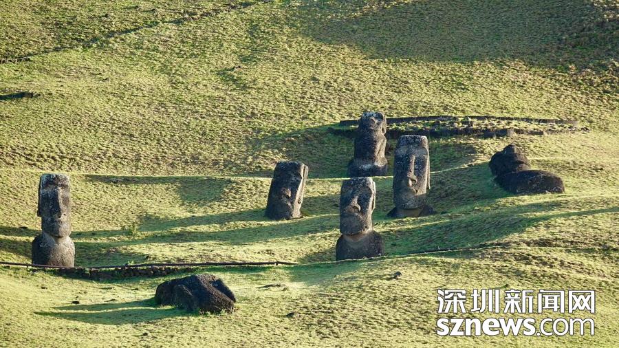 最新的研究表明,在文明全盛時期,復活節(jié)島巨石像一度有八百多座,但現(xiàn)在僅剩一百五十座。李仁奇 攝