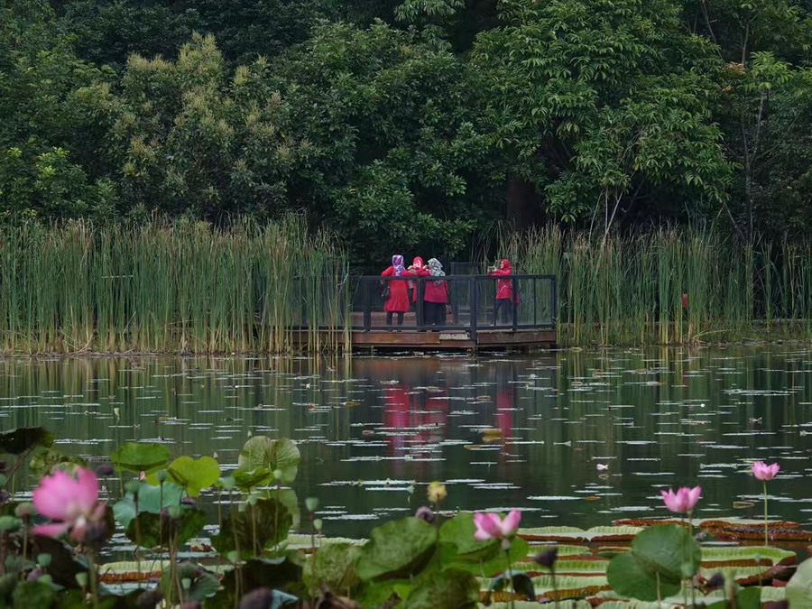 面積約100公頃,包括池沼、庭園、小丘等。園內(nèi)劃分為蓮花池、棕櫚屬、蔓生植物、竹林、藤類、蘭花科、仙人掌科、羊齒類等種植區(qū),種植著從印尼各地和世界各地引進的1萬多種樹木,有4000多屬科,還有50多萬種植物標(biāo)本。李仁奇攝