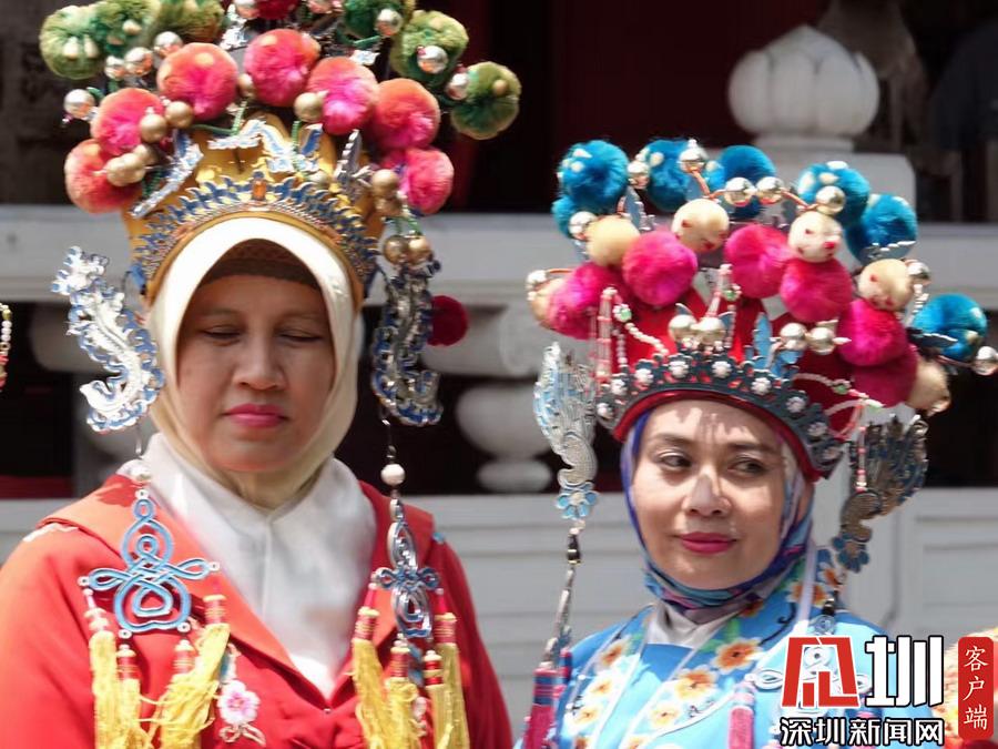 在鄭和廟,常有當(dāng)?shù)嘏阅滤沽肿庥弥袊鴤鹘y(tǒng)戲劇服裝在寺內(nèi)留影。李仁奇攝