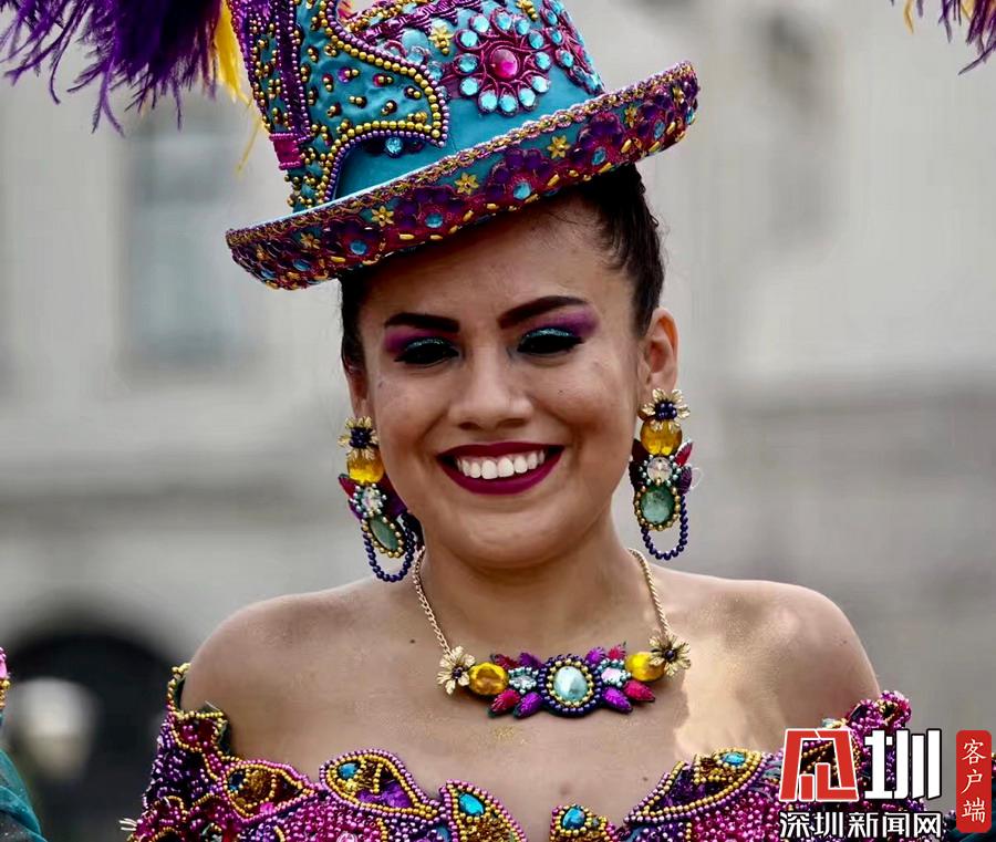 市中心武器廣場(chǎng)幾支中老年拉丁舞蹈隊(duì)艷麗的化妝和特色鮮明的民族服裝吸引著眾多的游客。李仁奇攝