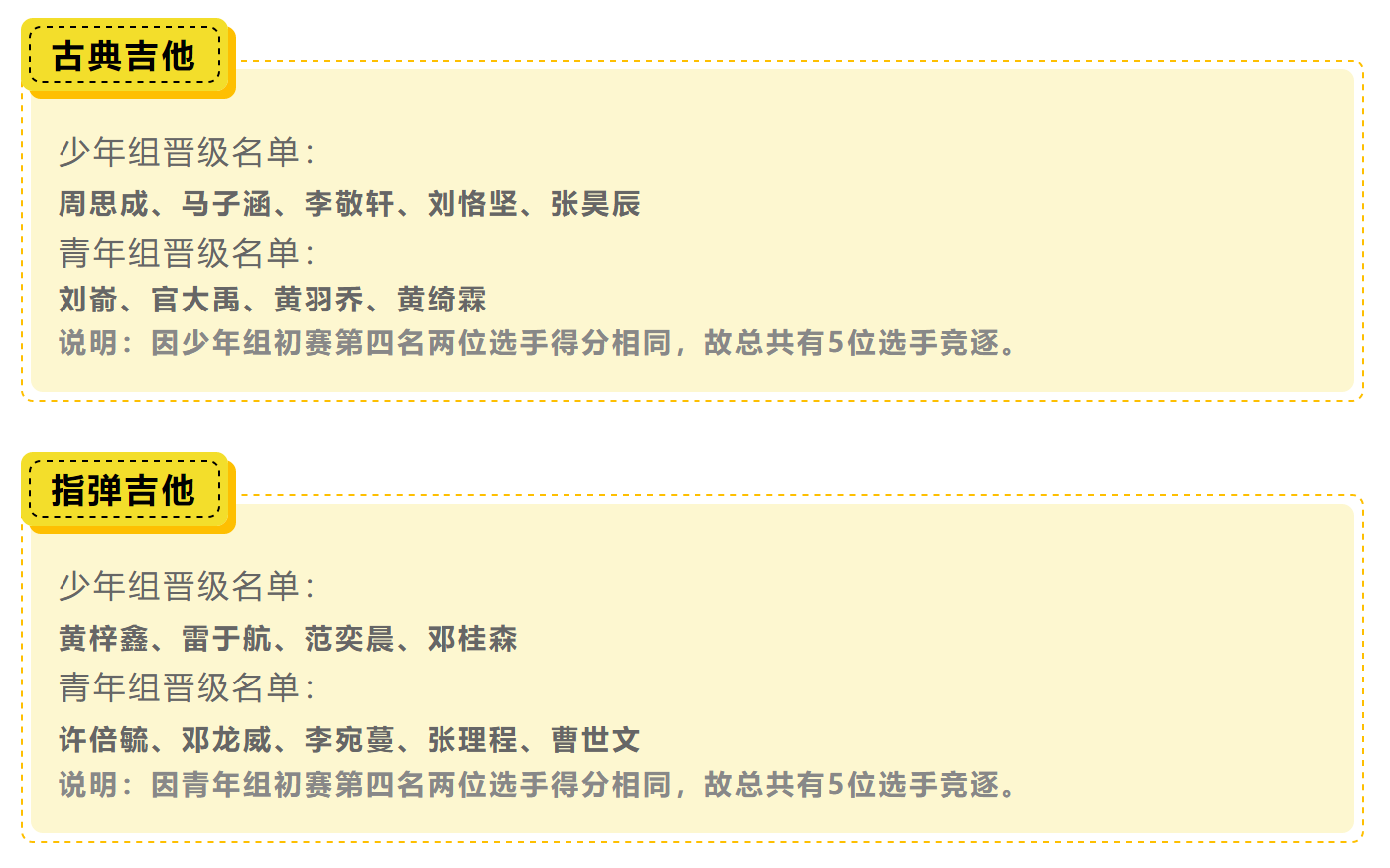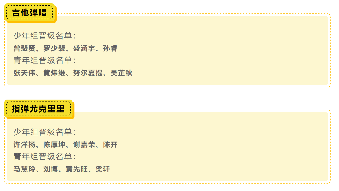 首屆“前海吉他&尤克里里大賽”,在短短一個(gè)月內(nèi)收到了全國(guó)各地愛(ài)好者的踴躍報(bào)名!經(jīng)過(guò)了專(zhuān)業(yè)評(píng)委們對(duì)初選綜合評(píng)分,最終在激烈的角逐下,組委會(huì)篩選出八個(gè)組別共34位選手入圍決賽!