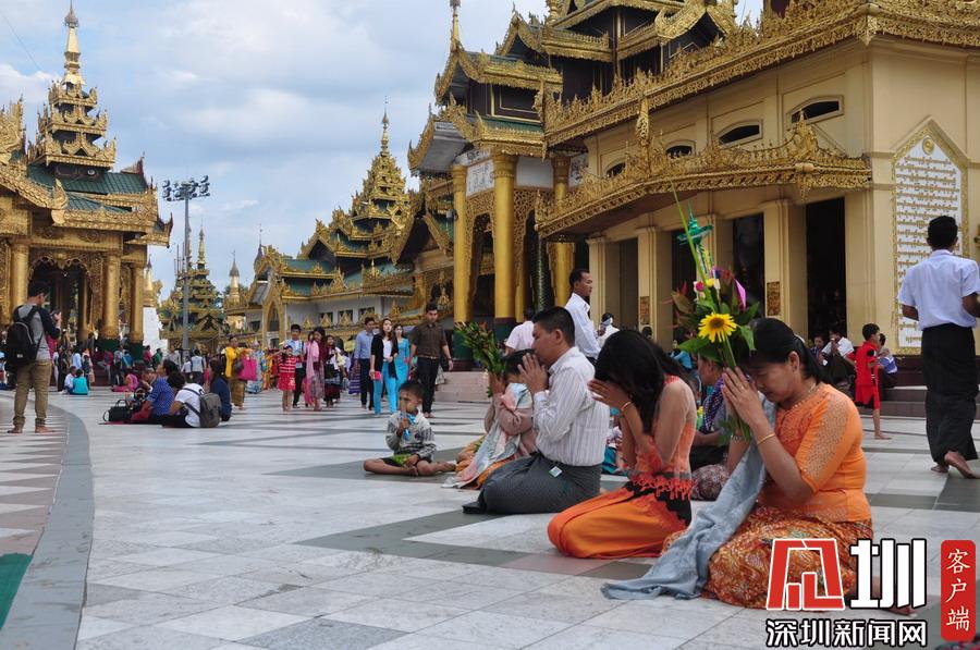 緬甸人把大金塔視為自己的驕傲。每天,都有很多人都到這里拜佛,有的來(lái)自緬甸國(guó)內(nèi),有的來(lái)自東南亞各國(guó),也有來(lái)自世界各地的游客。李仁奇攝