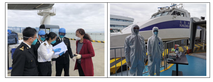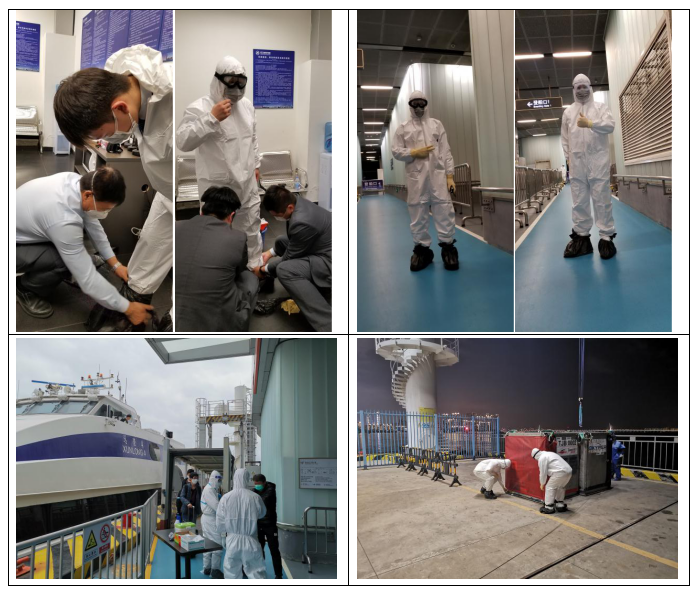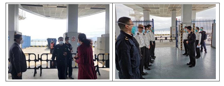 港口各級干部員工勇于擔當、迎難而上,勠力同心、眾志成城,共同筑牢嚴防疫情輸入的堅強防線,用實際行動詮釋了“牢記使命勇?lián)敗?。蛇口郵輪母港呂如福常務(wù)副總經(jīng)理與港口運營中心林麗華總經(jīng)理連夜開會部署至深夜,第二天仍早早趕到現(xiàn)場與聯(lián)檢單位共同查勘旅客動線;賴乙??偙O(jiān)接到航班通知后,放棄值班休息第一時間趕到現(xiàn)場布置各項保障任務(wù),并親自為一線員工穿戴防護用品;港口一線員工面對夜間加開航班旅客人數(shù)多且有發(fā)燒旅客的情況,毫不退縮、沖鋒在前,順利完成保障任務(wù),一直到深夜客船和旅客動線消毒清場完畢才下班。