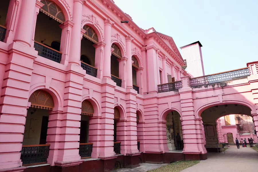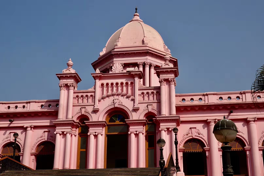 距孟加拉恒河渡口不遠(yuǎn)的地方有一座粉紅色宮殿式的豪華建筑。那是1872年一位名叫阿赫桑曼濟(jì)勒的地主在法國(guó)人留下的倉(cāng)房基礎(chǔ)上改建的私邸,后來曾在一次龍卷風(fēng)襲擊時(shí)受創(chuàng)。李仁奇 攝