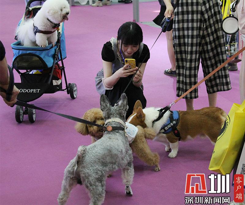 市民在現(xiàn)場(chǎng)給參展的寵物狗們拍照。