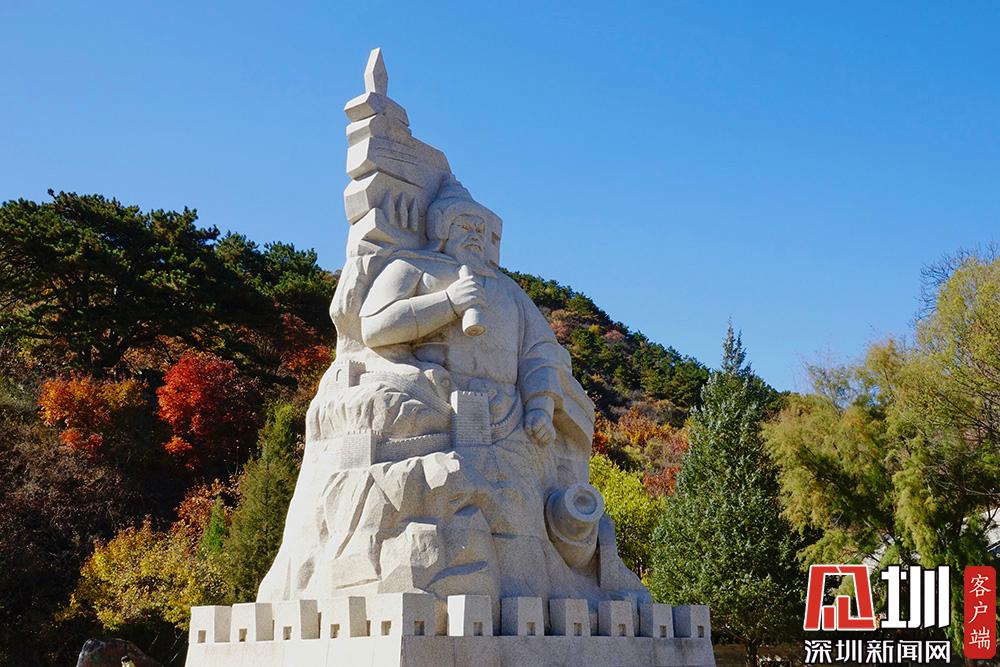 金山嶺長城,是現(xiàn)存保存最好的一段明長城。雕樓林立,如甲兵護(hù)衛(wèi),“一夫當(dāng)關(guān),萬夫莫開”,以其視野開闊、敵樓密集、建筑防御體系功能奇特而著稱于世。圖為徐達(dá)塑像。李仁奇攝