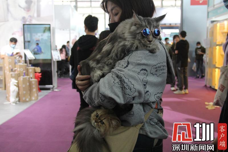 一位觀眾同時帶著兩只寵物貓逛展。