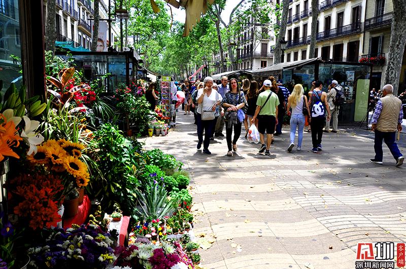 這條街連接著老城區(qū)加泰羅尼亞廣場(chǎng)和哥倫布紀(jì)念碑廣場(chǎng)兩個(gè)主要景點(diǎn),每天游人如織。圖為蘭布瑯花街。李仁奇 攝