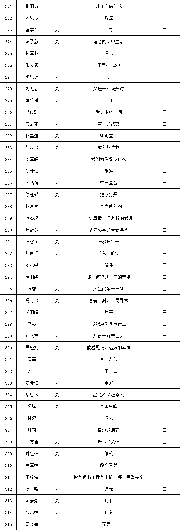 自2021年1月,活動征稿啟動以來,獲得了深圳市廣大中小學(xué)生、教師、文學(xué)愛好者的熱烈響應(yīng)積極參與,吸引了深圳百余所學(xué)校的上萬人關(guān)注報名?,F(xiàn)公布龍華區(qū)外國語學(xué)校專場晉級復(fù)賽名單如下: