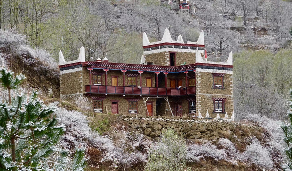 當(dāng)群山還披著皚皚白雪,春寒尚未消盡,甲居藏寨的梨花卻已悄然開(kāi)放。李仁奇 攝
