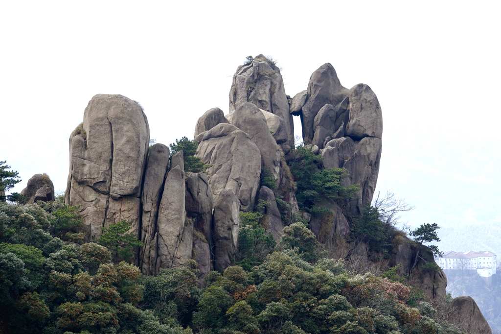由于其隆起幅度自核心部位向周圍逐漸減小,外圍山地由硬度較花崗巖小的花崗閃長巖和沉積巖組成,易被沖刷蝕低,故整個九華山體由眾多千姿百態(tài)、高低參差的中山、低山、丘陵和山間盆地等組成。李仁奇 攝