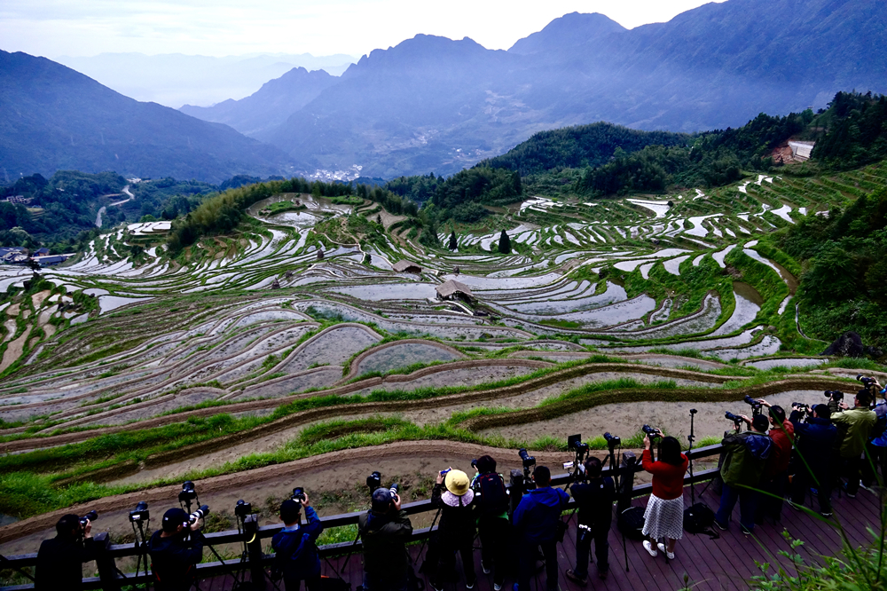 是華東最大的梯田群,具有“千層梯田、千米落差、千年歷史”,擁有“萬里云海、萬畝杜鵑、萬畝竹林”,是國(guó)家AAAA級(jí)旅游景區(qū),被譽(yù)為“中國(guó)最美梯田”。李仁奇 攝
