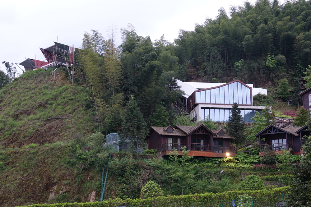 在梯田的山間,有著幾幢坐落在山腰上的民宿。李仁奇 攝