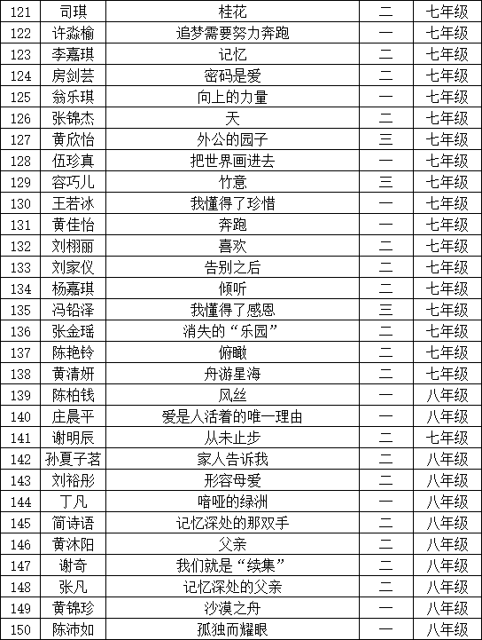 自2021年1月,活動征稿啟動以來,獲得了深圳市廣大中小學(xué)生、教師、文學(xué)愛好者的熱烈響應(yīng)積極參與,吸引了深圳百余所學(xué)校的上萬人關(guān)注報名?,F(xiàn)公布寶安區(qū)翻身實驗學(xué)校(東校區(qū))晉級復(fù)賽名單如下: