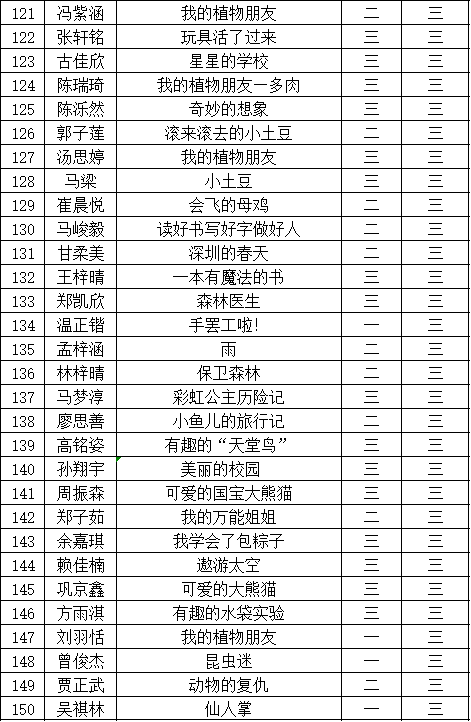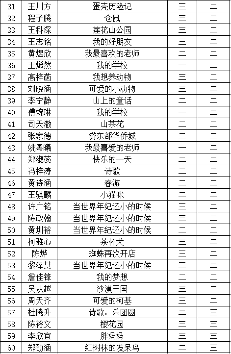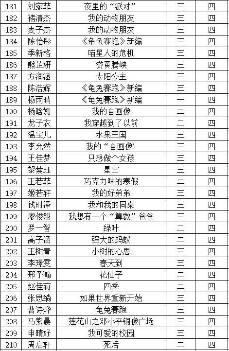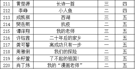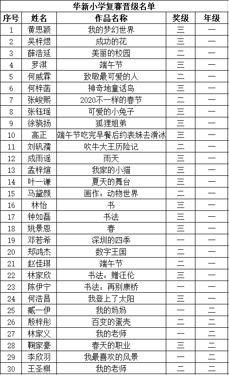 自2021年1月,活動征稿啟動以來,獲得了深圳市廣大中小學(xué)生、教師、文學(xué)愛好者的熱烈響應(yīng)積極參與,吸引了深圳百余所學(xué)校的上萬人關(guān)注報名。現(xiàn)公布福田區(qū)華新小學(xué)晉級復(fù)賽名單如下: