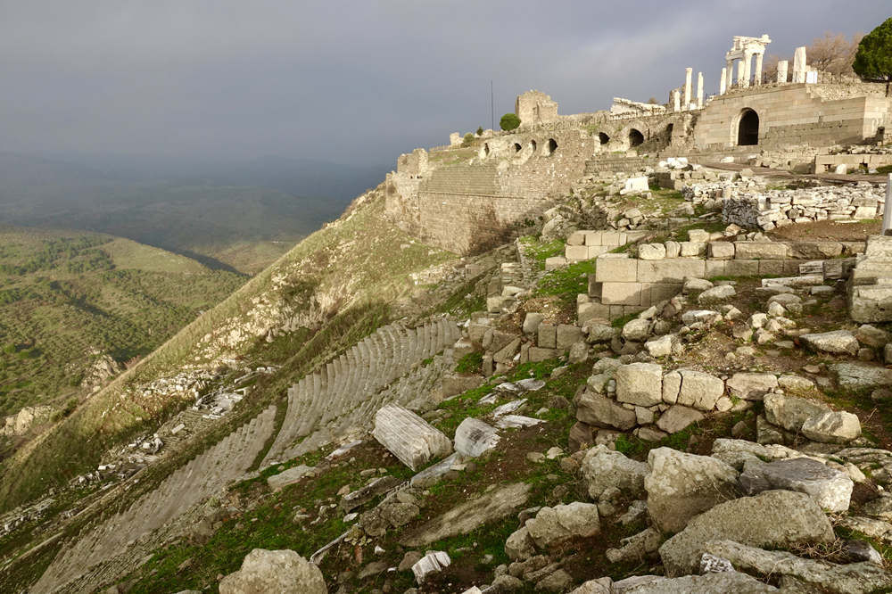 羅馬帝國時,城市遷到山下的平原。山頂和山坡高處的古跡包括一座劇場、雅典娜神廟以及宙斯大祭壇。李仁奇 攝