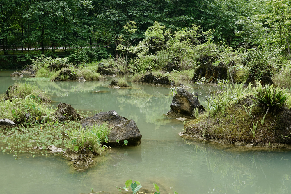 水中的石頭長(zhǎng)滿蕨類(lèi)植物,就像一個(gè)個(gè)盆栽。李仁奇 攝